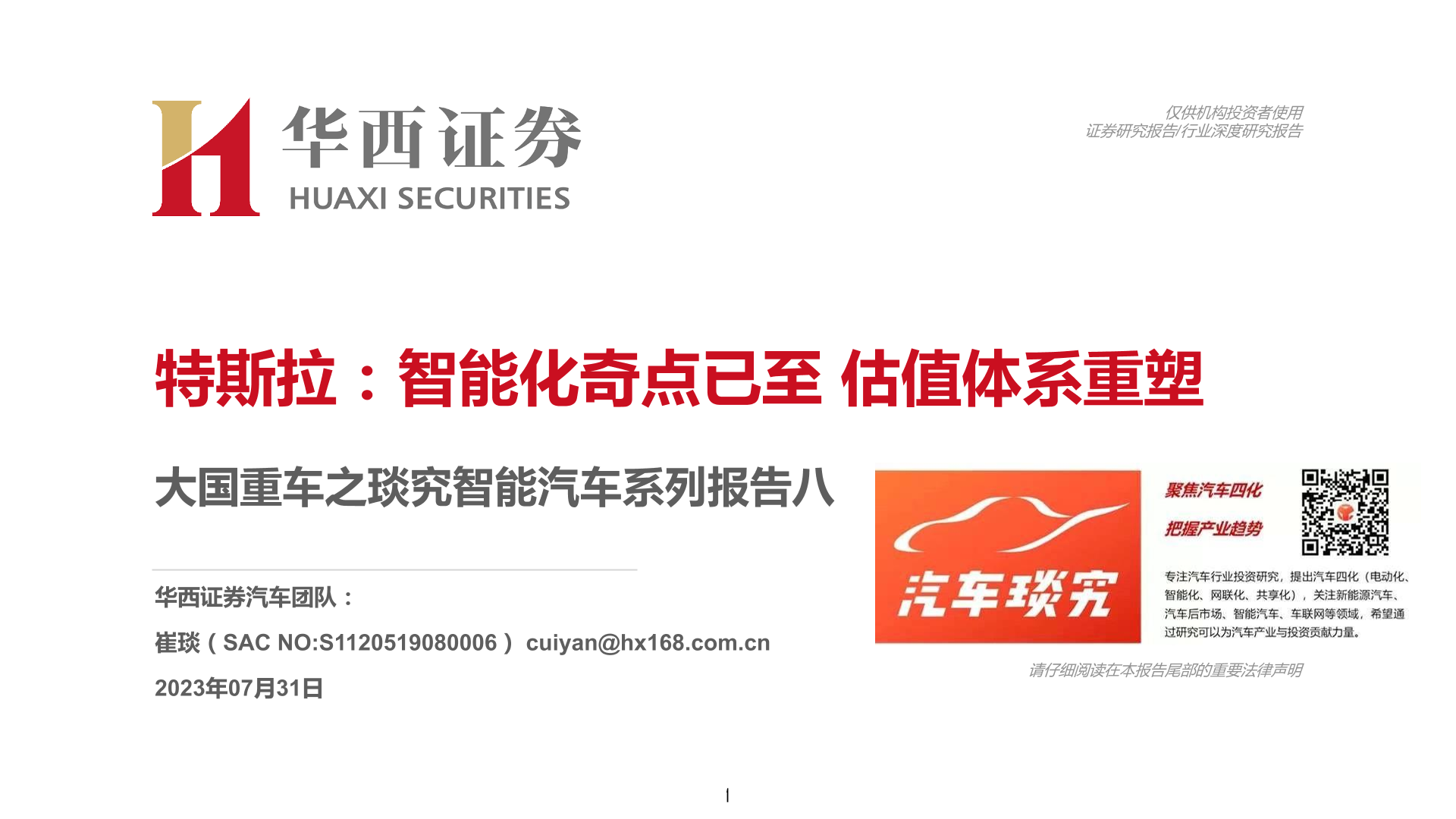 【华西证券】【20230731】大国重车之琰究智能汽车系列报告八:特斯拉-智能化奇点已至 估值体系重塑-46页