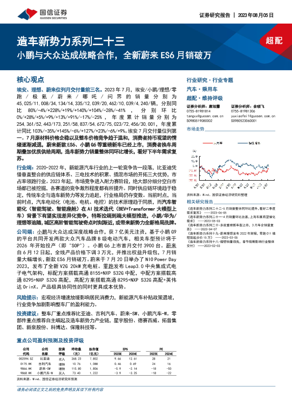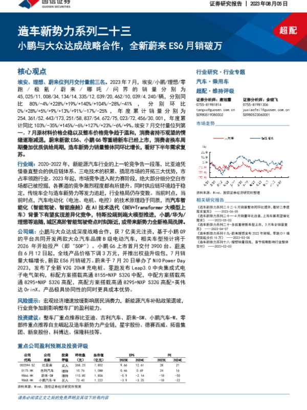【国信证券】【20230805】造车新势力系列二十三-小鹏与大众达成战略合作,全新蔚来ES6月销破万-33页