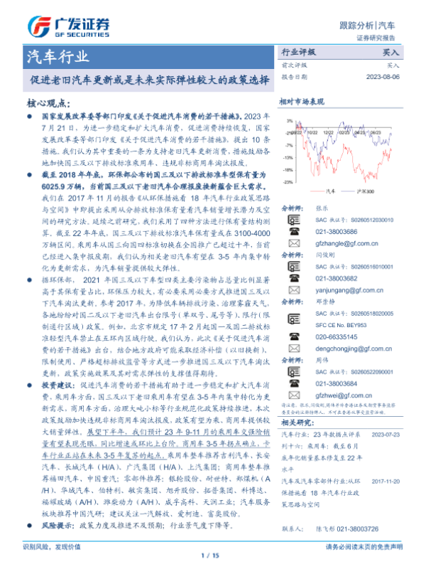 【广发证券】【20230806】20230806-广发证券-汽车行业跟踪分析:促进老旧汽车更新或是未来实际弹性较大的政策选择-15页