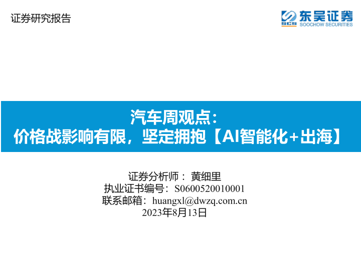 【东吴证券】【20230813】汽车周观点:价格战影响有限,坚定拥抱【AI智能化+出海】-31页
