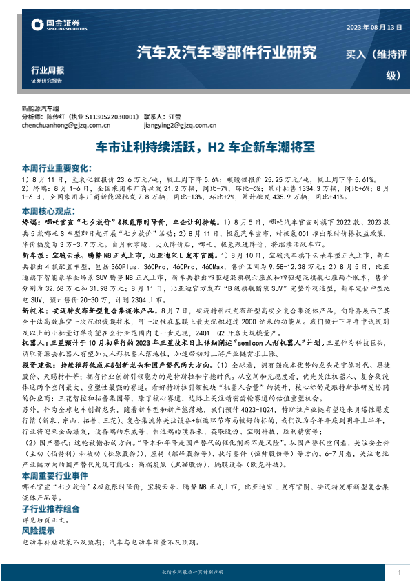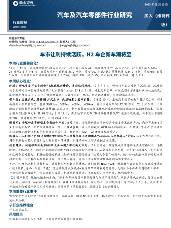 【国金证券】【20230813】汽车及汽车零部件行业研究:车市让利持续活跃,H2车企新车潮将至-15页