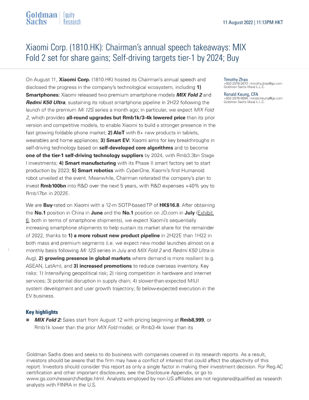 【Goldman Sachs】【20220811】ays_ MIX Fold 2 set for share gains; Self-driving targets tier-1 by 20...-9页