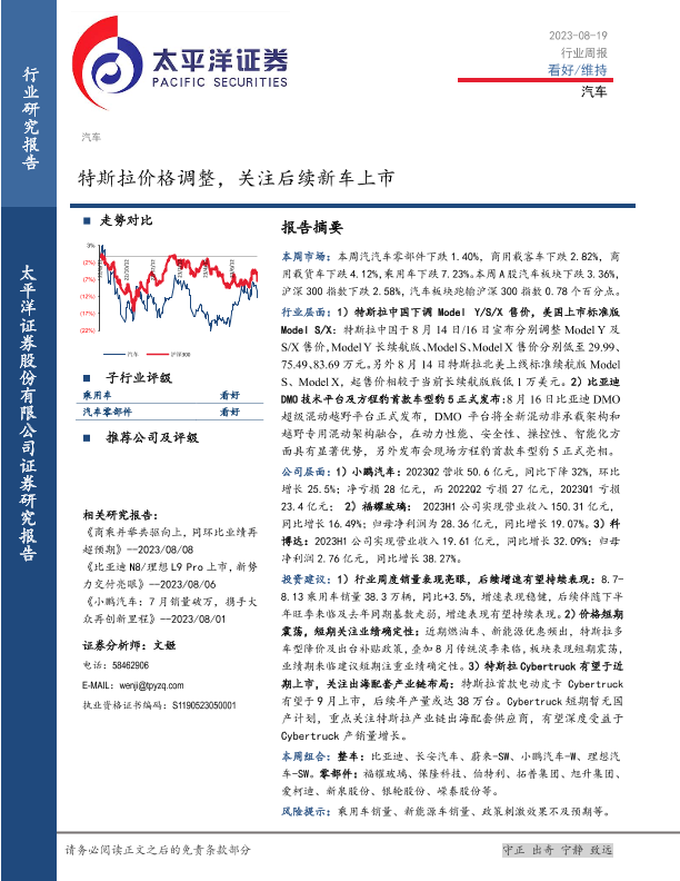 【太平洋证券】【20230819】20230819-太平洋-汽车行业周报:特斯拉价格调整,关注后续新车上市-20页