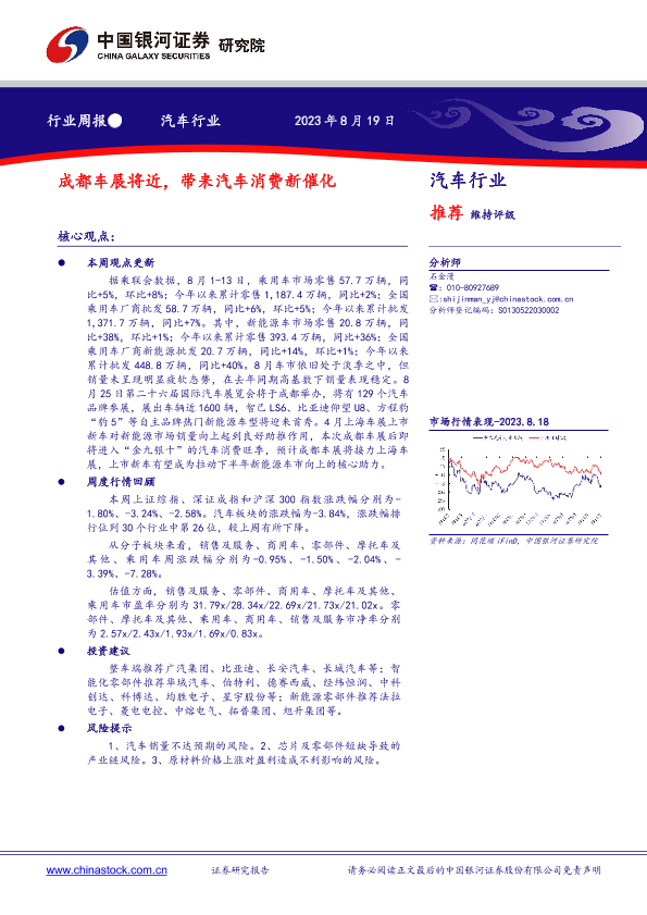 【银河证券】【20230819】20230819-中国银河-汽车行业周报:成都车展将近,带来汽车消费新催化-14页