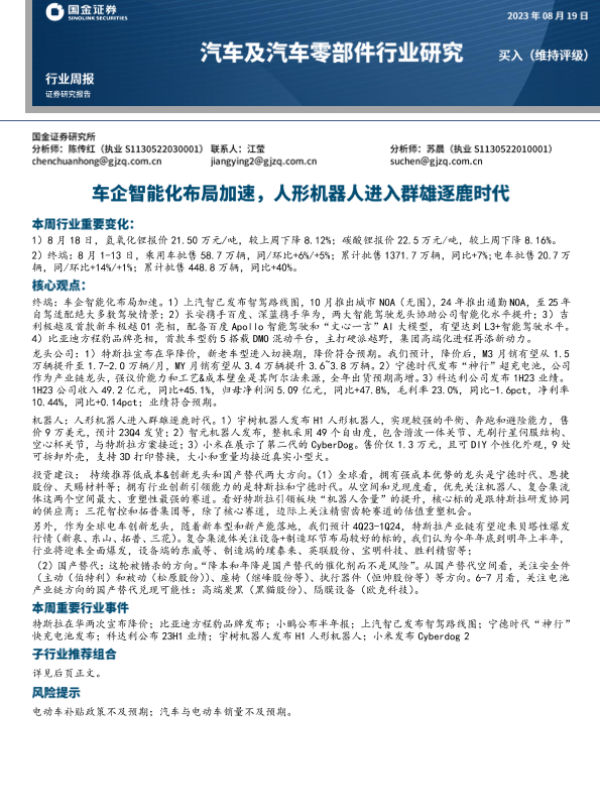 【国金证券】【20230819】汽车及汽车零部件行业研究:车企智能化布局加速,人形机器人进入群雄逐鹿时代-16页
