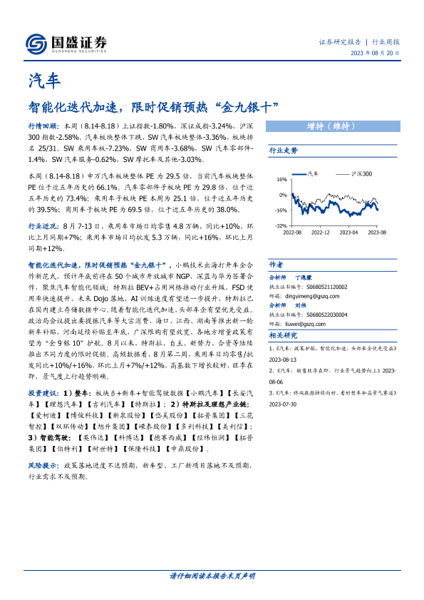 【国盛证券】【20230820】20230820-国盛证券-汽车行业周报:智能化迭代加速,限时促销预热“金九银十”-20页