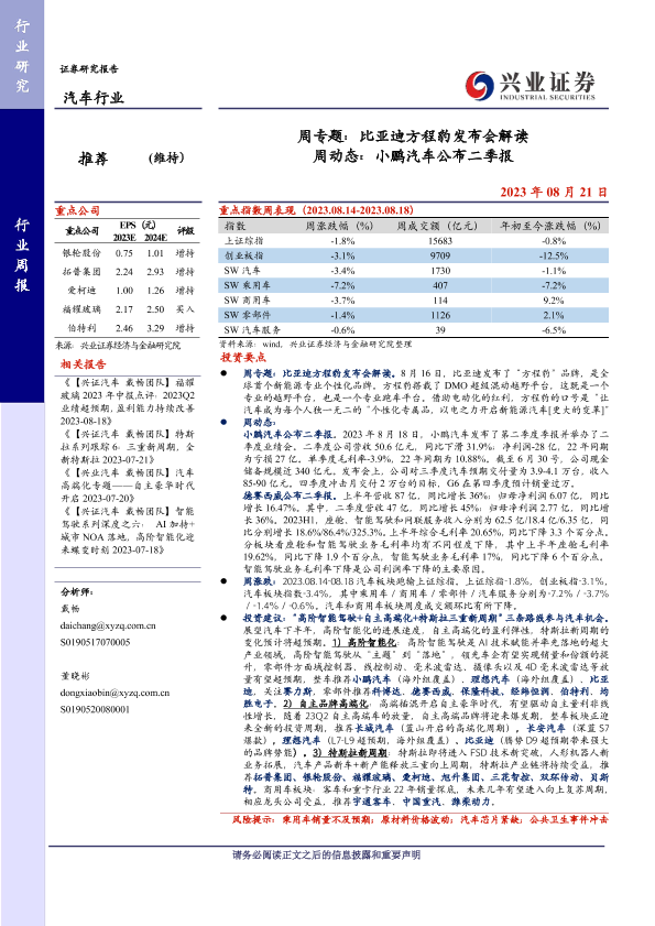 【兴业证券】【20230821】周专题:比亚迪方程豹发布会解读 周动态:小鹏汽车公布二季报-18页