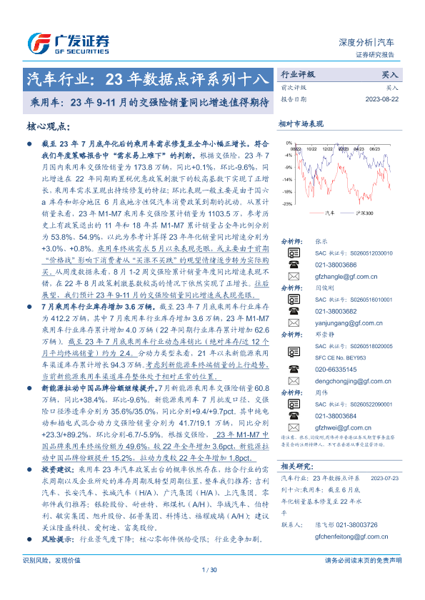 【广发证券】【20230822】乘用车:23年9-11月的交强险销量同比增速值得期待-30页