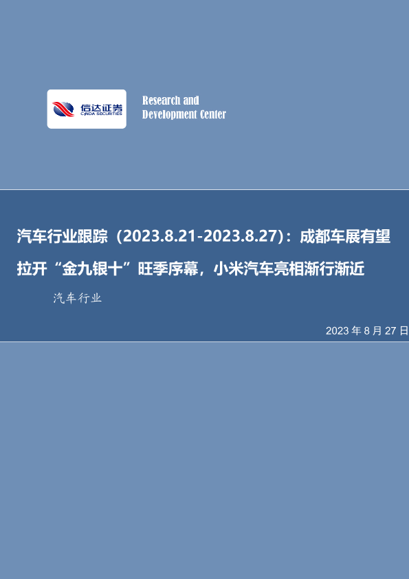 【信达证券】【20230827】汽车行业跟踪:成都车展有望拉开“金九银十”旺季序幕,小米汽车亮相渐行渐近-28页