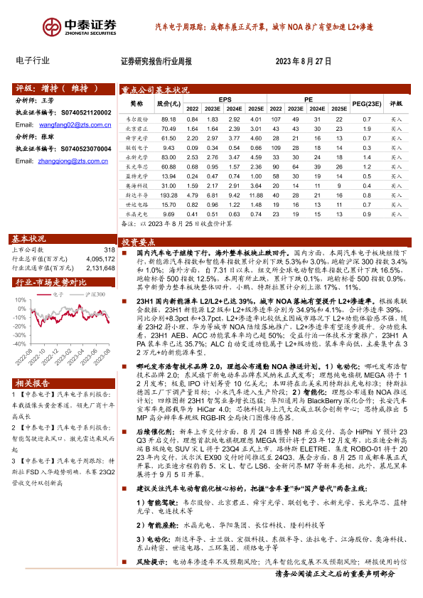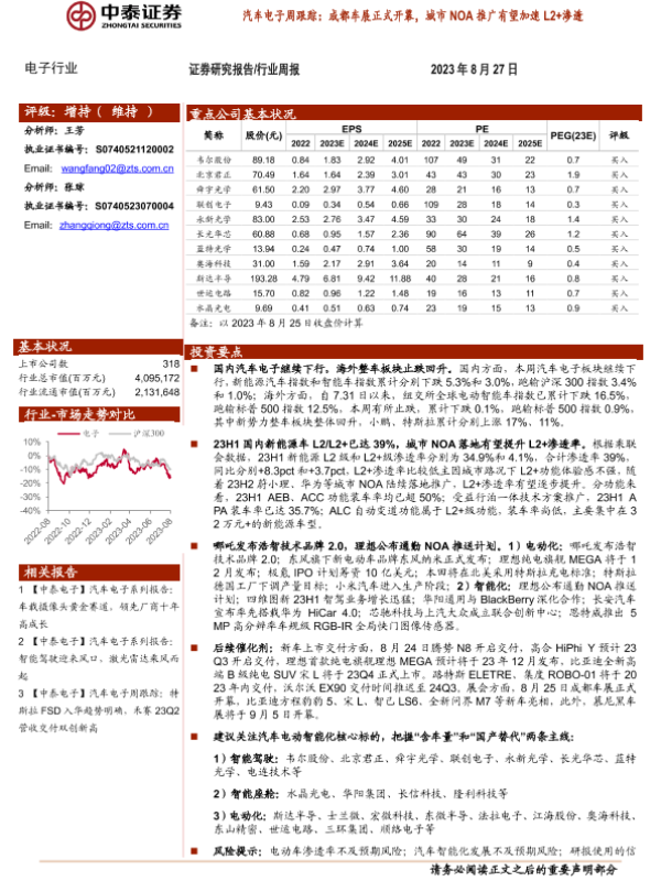 【中泰证券】【20230827】汽车电子周跟踪:成都车展正式开幕,城市NOA推广有望加速L2+渗透-14页