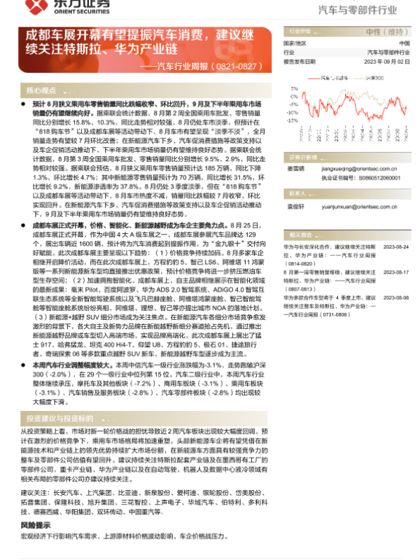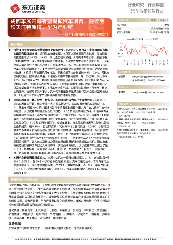【东方证券】【20230902】20230902-东方证券-汽车行业周报:成都车展开幕有望提振汽车消费,建议继续关注特斯拉、华为产业链-21页