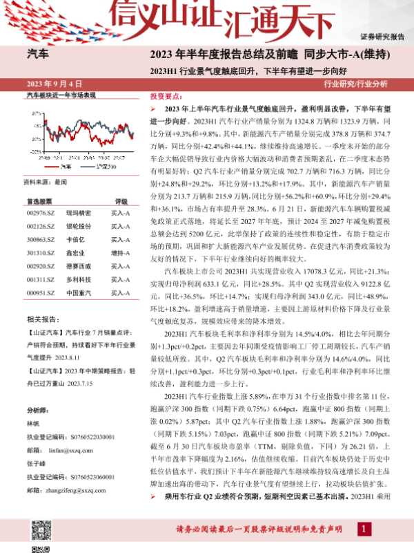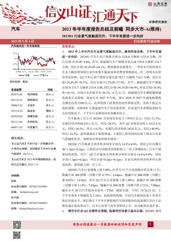 【山西证券】【20230904】汽车:2023年半年度报告总结及前瞻-16页