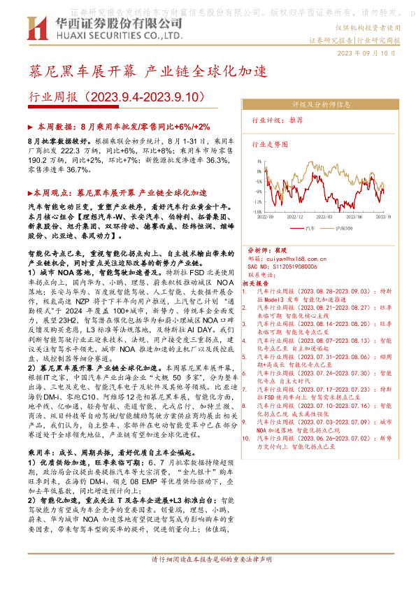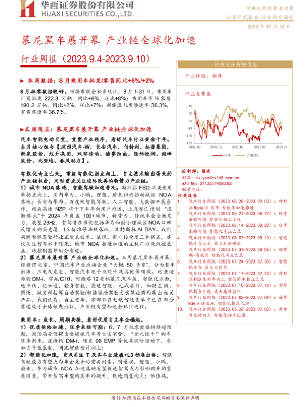 【华西证券】【20230910】20230910-华西证券-汽车行业周报:慕尼黑车展开幕 产业链全球化加速-31页