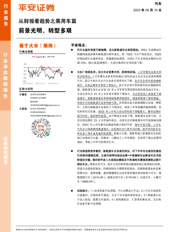 【平安证券】【20230910】从财报看趋势之乘用车篇:前景光明、转型多艰-13页