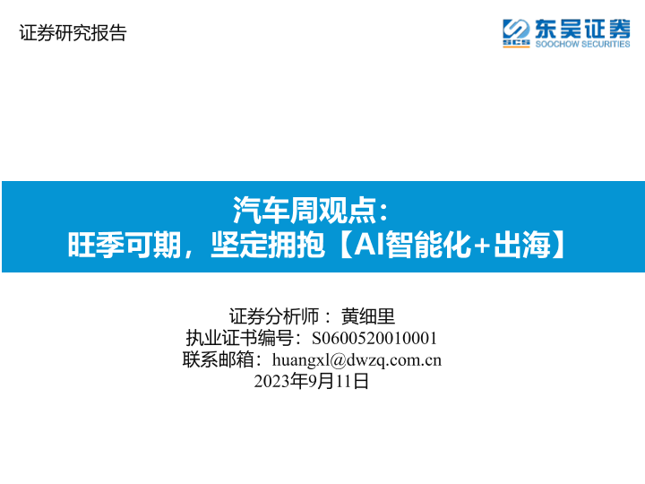 【东吴证券】【20230911】汽车周观点:旺季可期,坚定拥抱【AI智能化+出海】-31页