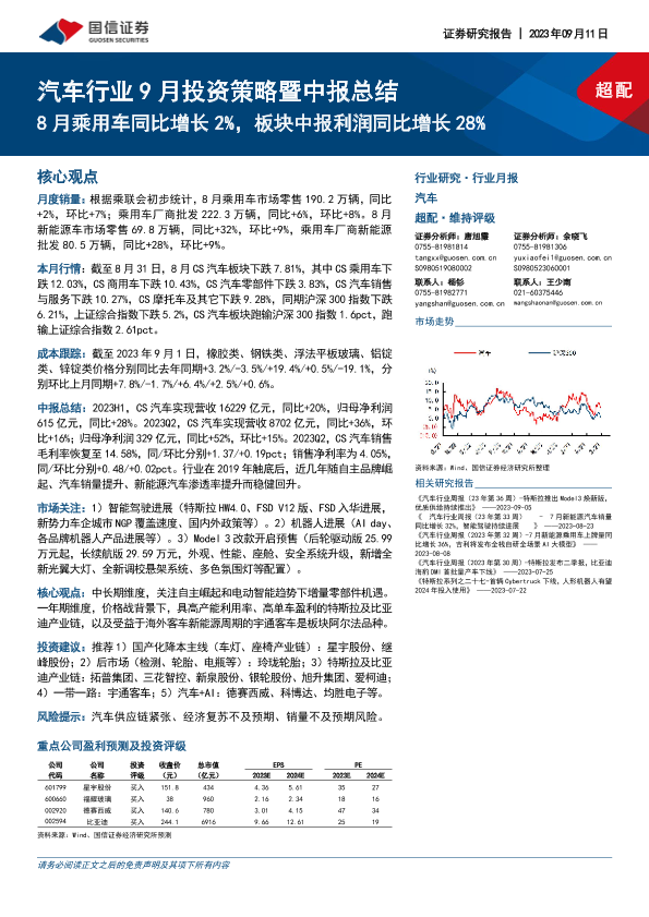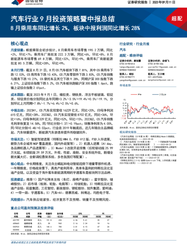 【国信证券】【20230911】汽车行业9月投资策略暨中报总结:8月乘用车同比增长2%,板块中报利润同比增长28%-56页