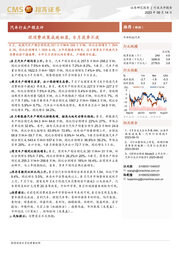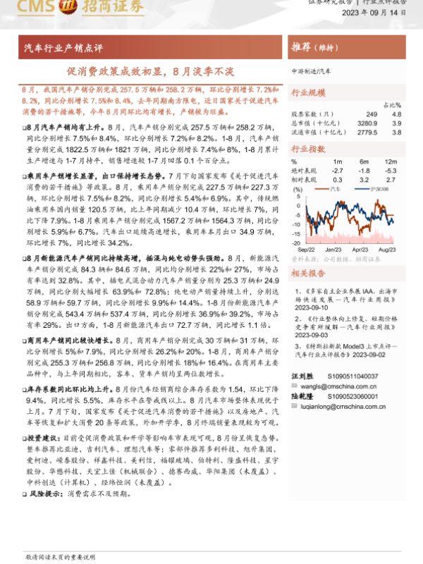【海通证券】【20230914】汽车行业产销点评:促消费政策成效初显,8月淡季不淡-4页