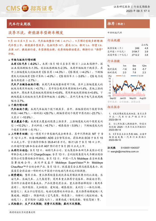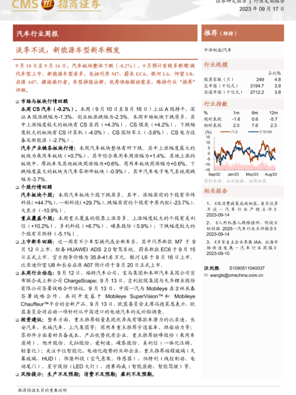 【海通证券】【20230917】20230917-招商证券-汽车行业周报:淡季不淡,新能源车型新车频发-6页