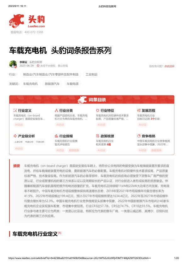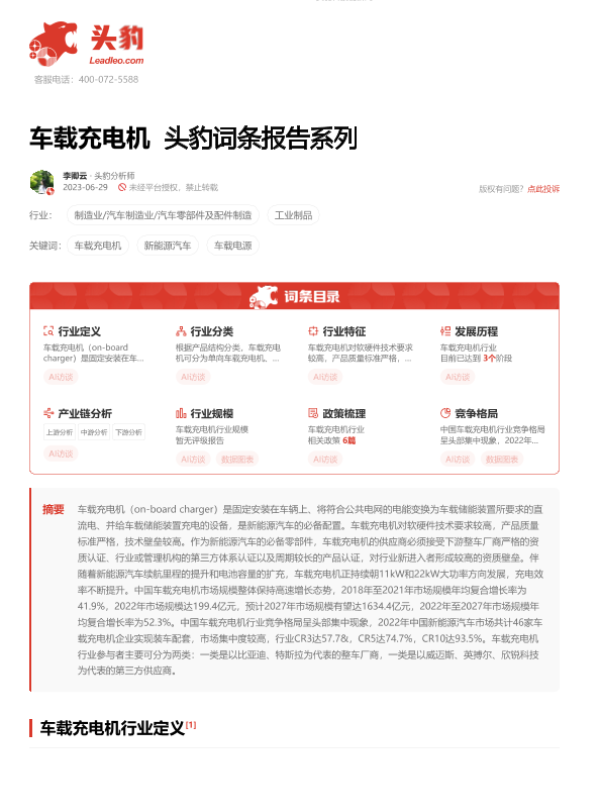 【头豹研究院】【202309】车载充电机 头豹词条报告系列-20页