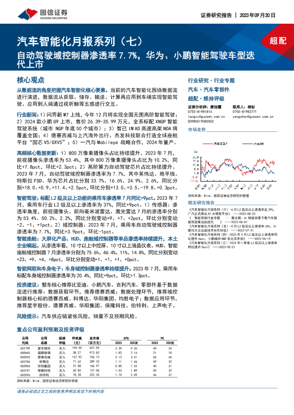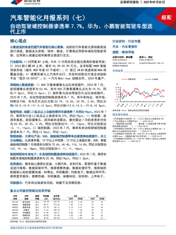 【国信证券】【20230920】汽车智能化月报系列(七):自动驾驶域控制器渗透率7.7%,华为、小鹏智能驾驶车型迭代上市-65页