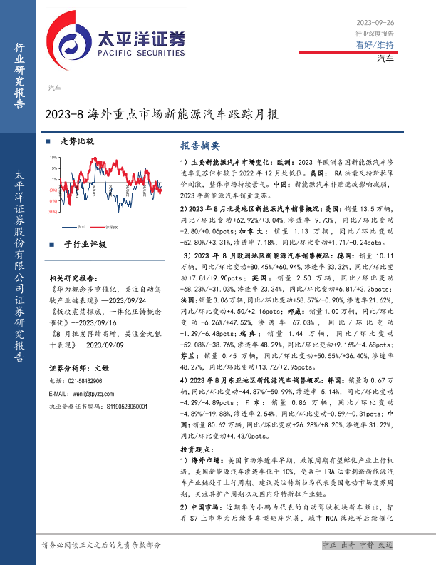 【太平洋证券】【20230926】2023-8海外重点市场新能源汽车跟踪月报-23页
