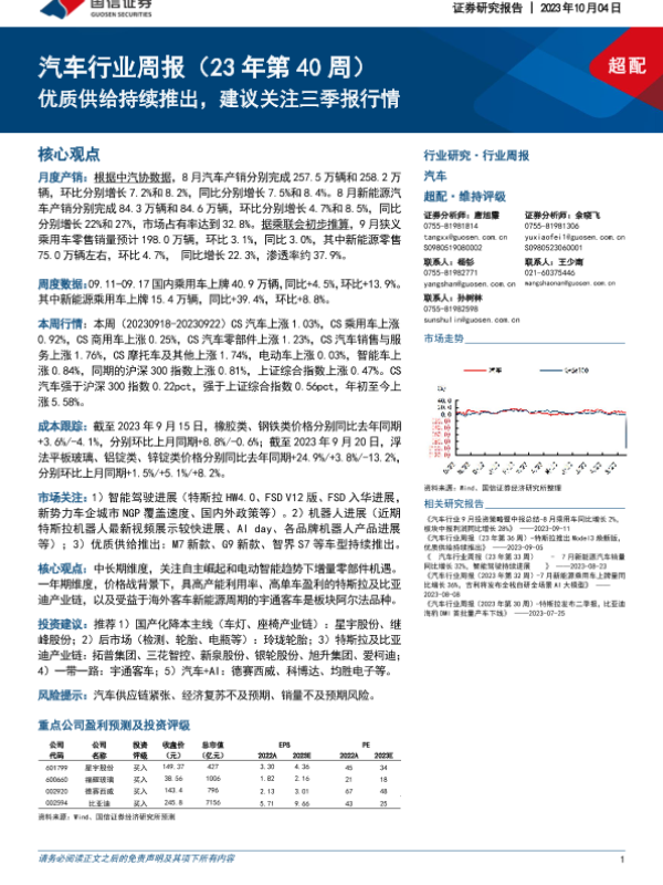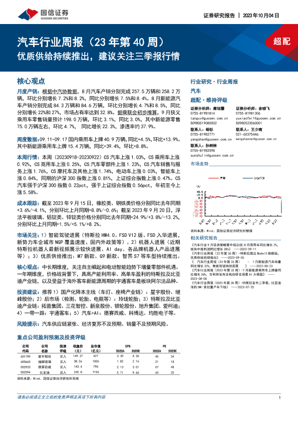 【国信证券】【20231004】20231004-国信证券-汽车行业周报(23年第40周):优质供给持续推出,建议关注三季报行情-35页