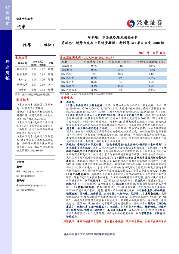 【兴业证券】【20231008】周专题:华为液冷超充相关分析:周动态:新势力发布9月销量数据,新问界M7单日大定7000辆-17页