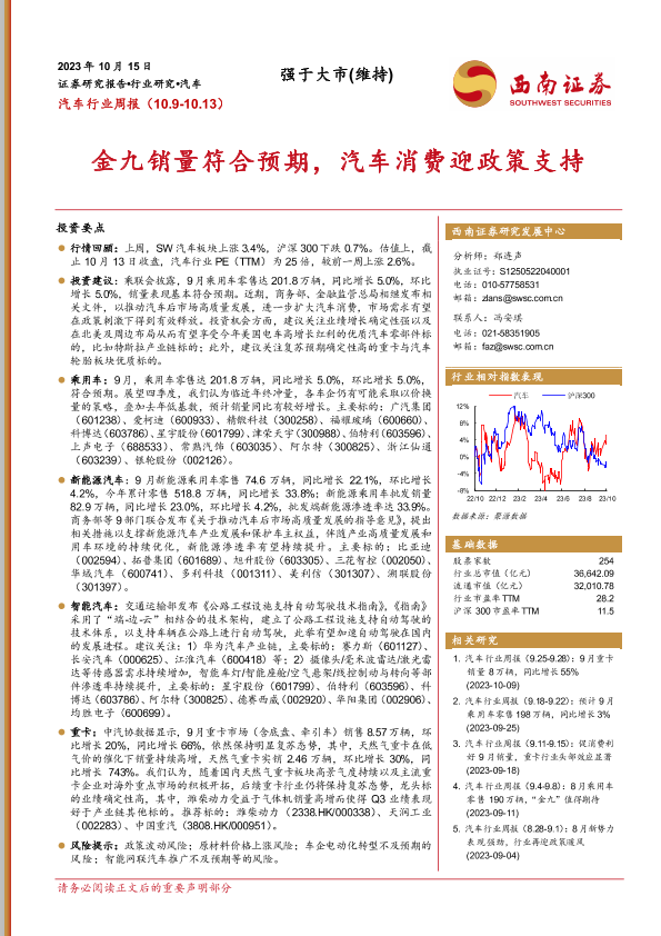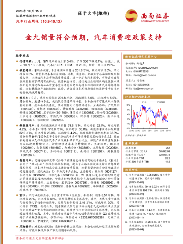 【西南证券】【20231015】汽车行业周报:金九销量符合预期,汽车消费迎政策支持-20页