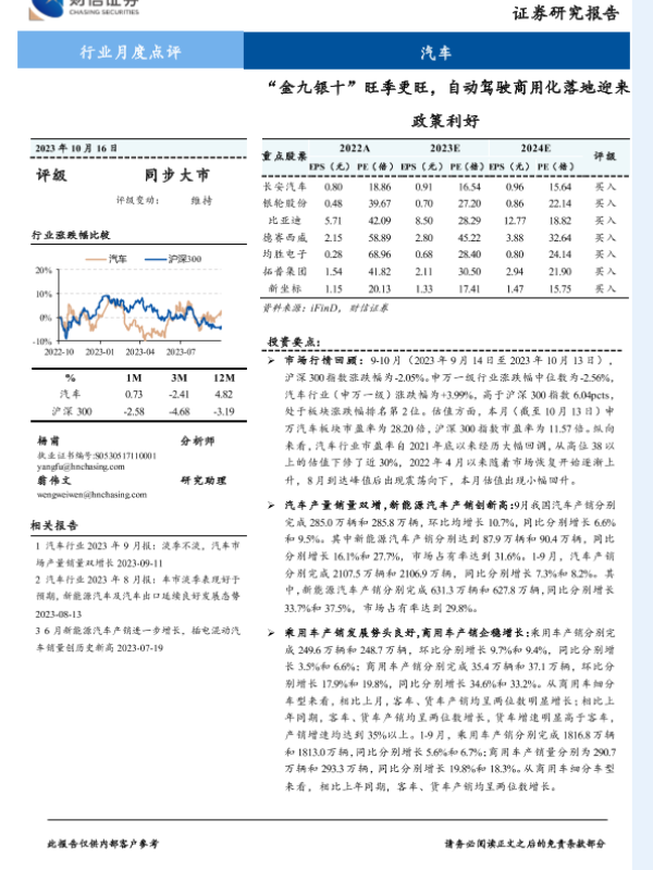市场分析 政策利好 汽车行业 自动驾驶 证券研究