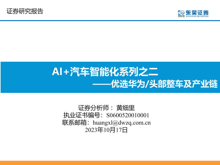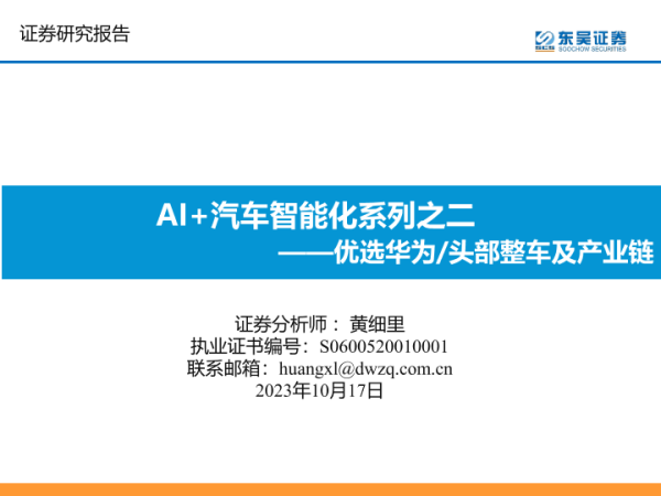 【东吴证券】【20231017】AI+汽车智能化系列之二:优选华为 头部整车及产业链-47页