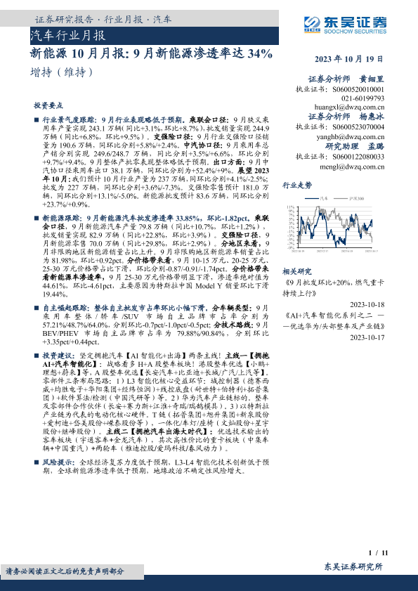 【东吴证券】【20231019】新能源10月月报:9月新能源渗透率达34%-11页
