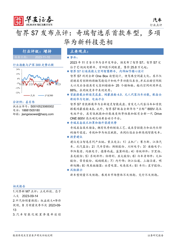 【华安证券】【20231110】20231110-华安证券-汽车行业点评:智界S7发布点评:奇瑞智选系首款车型,多项华为新科技亮相-12页