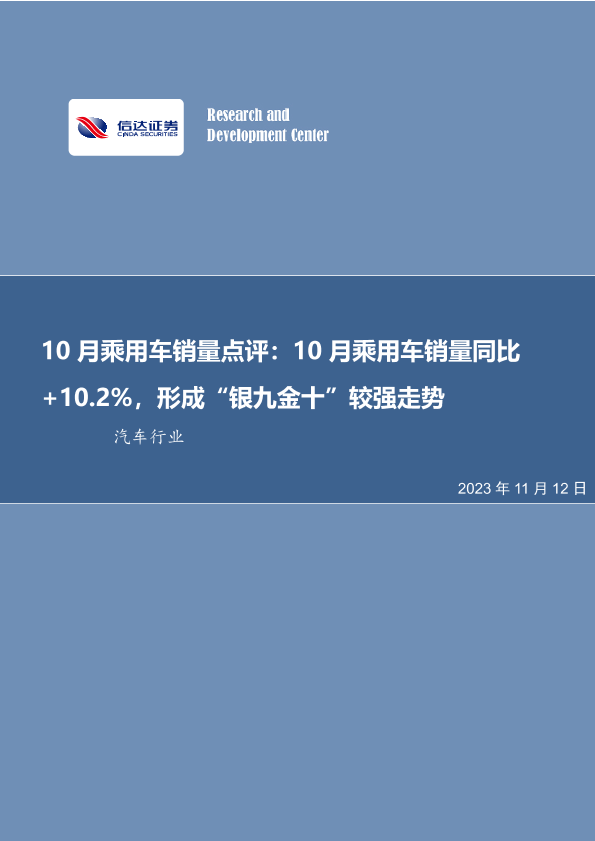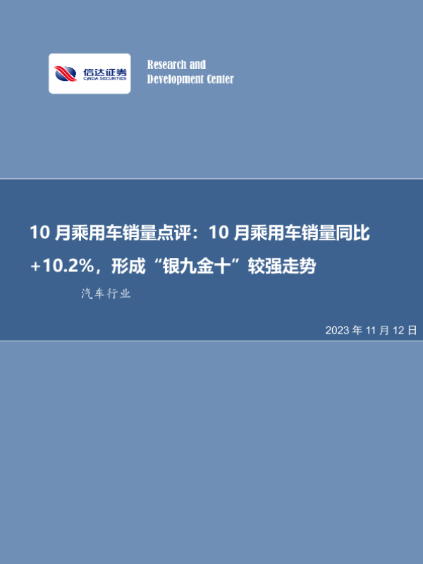 【信达证券】【20231112】10月乘用车销量点评:10月乘用车销量同比+10.2%,形成“银九金十”较强走势-12页