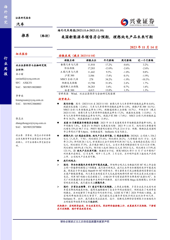 【兴业证券】【20231114】美国新能源车销售符合预期,理想纯电产品未来可期-30页