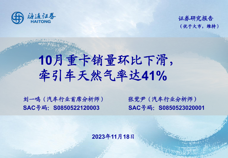 【海通证券】【20231118】10月重卡销量环比下滑,牵引车天然气率达41%-21页