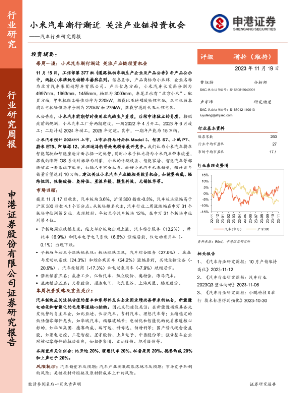 【申港证券】【20231119】20231119-申港证券-汽车行业研究周报:小米汽车渐行渐近 关注产业链投资机会-14页