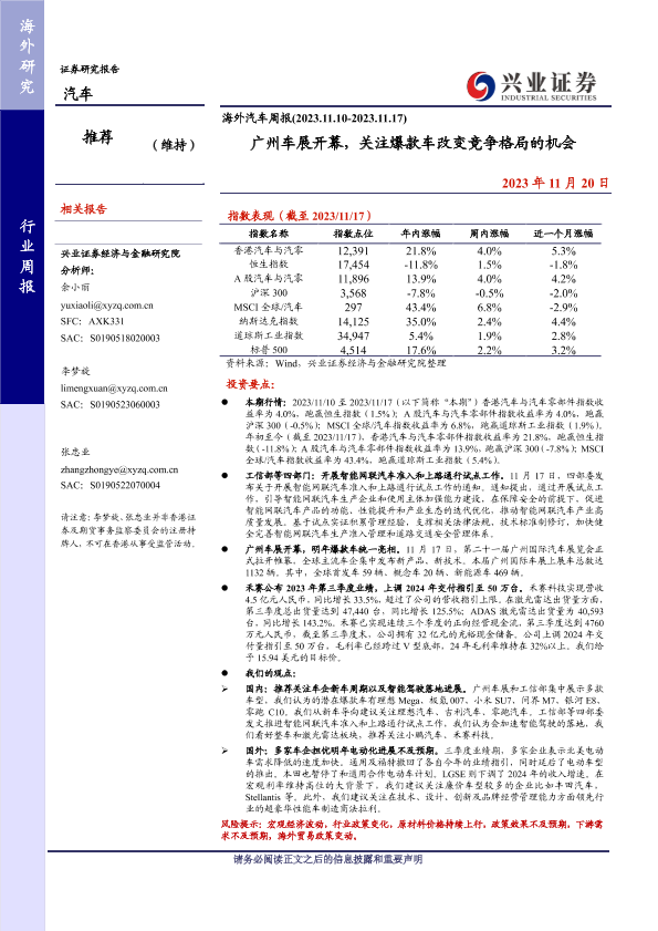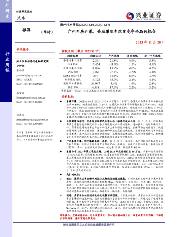 【兴业证券】【20231120】海外汽车周报:广州车展开幕,关注爆款车改变竞争格局的机会-33页