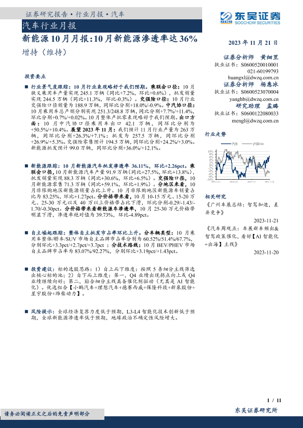 【东吴证券】【20231121】20231121-东吴证券-汽车行业月报:新能源10月月报:10月新能源渗透率达36%-11页
