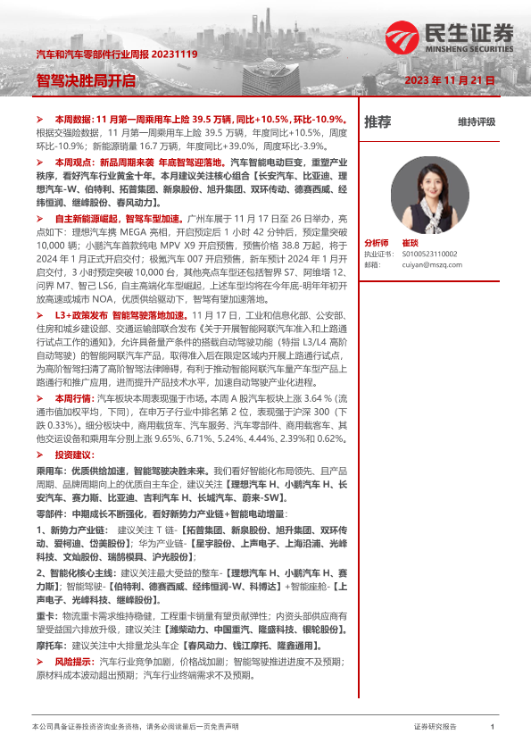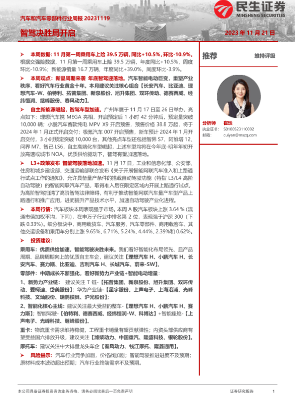 【民生证券】【20231121】汽车和汽车零部件行业周报:智驾决胜局开启-40页