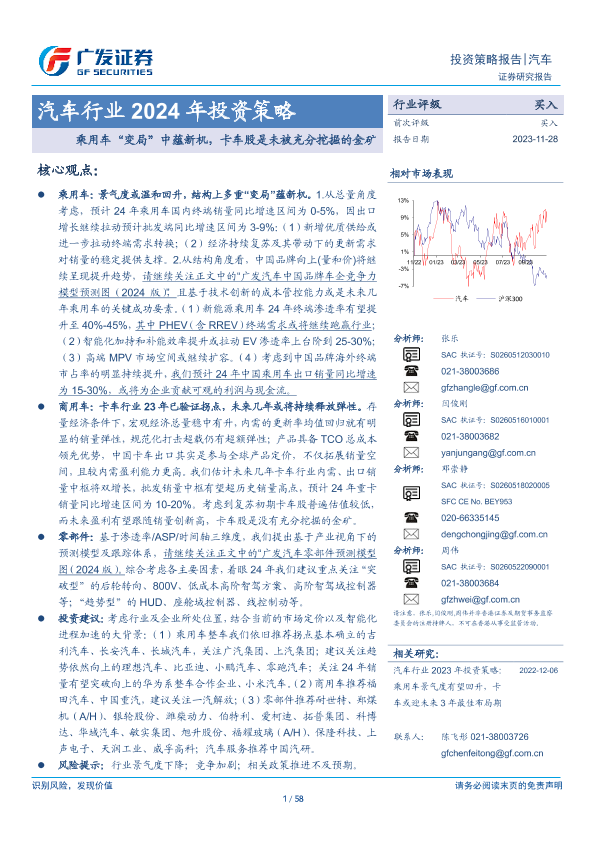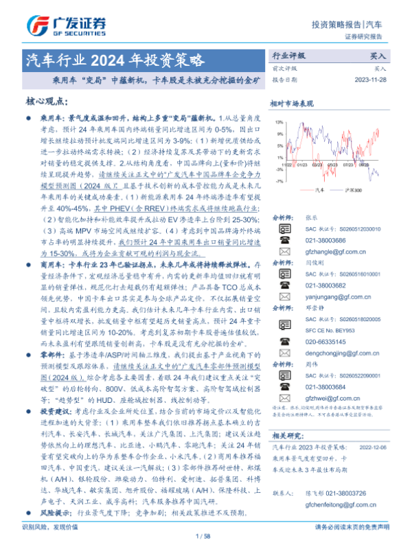 【广发证券】【20231128】汽车行业2024年投资策略:乘用车“变局”中蕴新机,卡车股是未被充分挖掘的金矿-58页