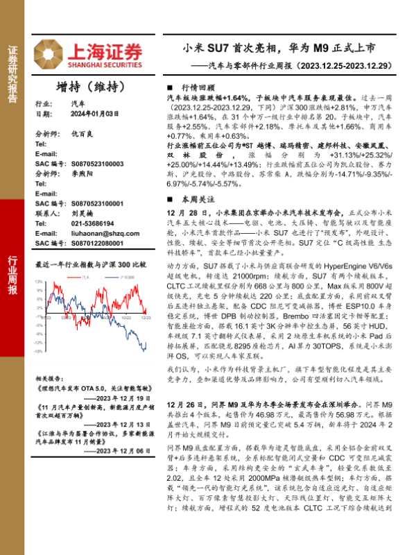 【上海证券】【20240103】汽车与零部件行业周报:小米SU7首次亮相,华为M9正式上市-11页