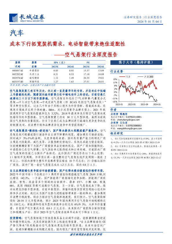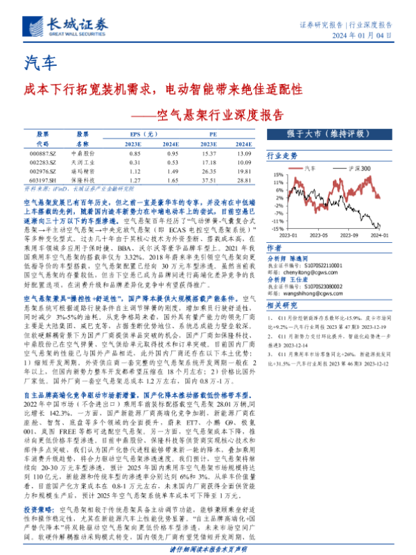 【长城证券】【20240104】汽车空气悬架行业深度报告:成本下行拓宽装机需求,电动智能带来绝佳适配性-30页