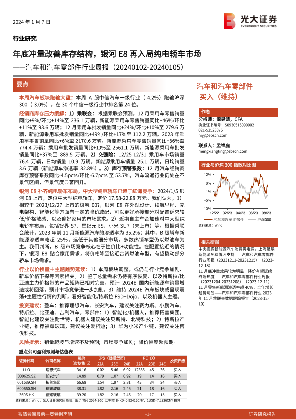【光大证券】【20240107】汽车和汽车零部件行业周报:年底冲量改善库存结构,银河E8再入局纯电轿车市场-24页