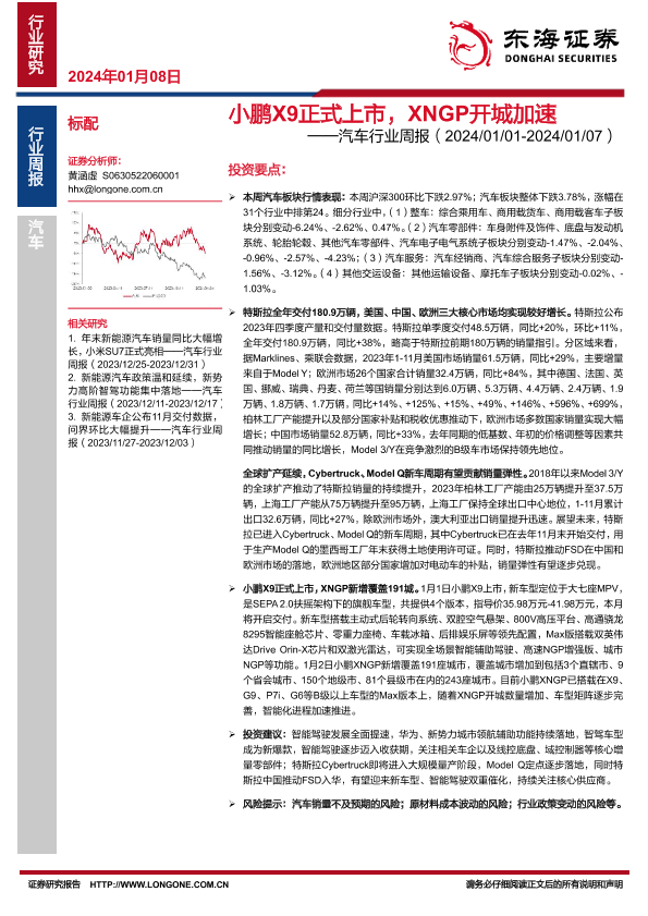 【东海证券】【20240108】20240108-东海证券-汽车行业周报:小鹏X9正式上市,XNGP开城加速-15页