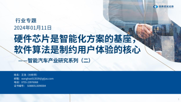 【国泰君安证券】【20240111】智能汽车产业研究系列(二):硬件芯片是智能化方案的基座,软件算法是制约用户体验的核心-54页