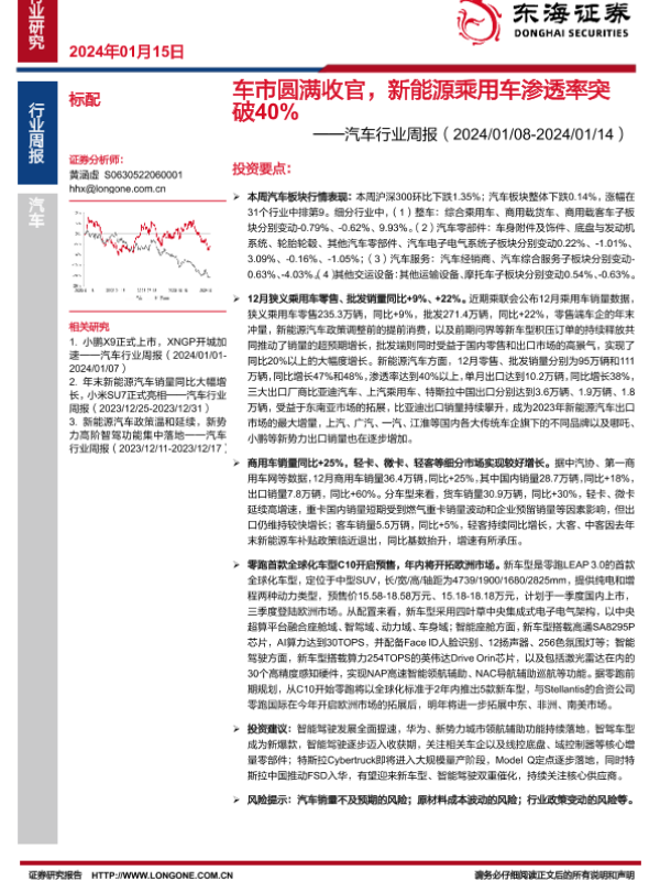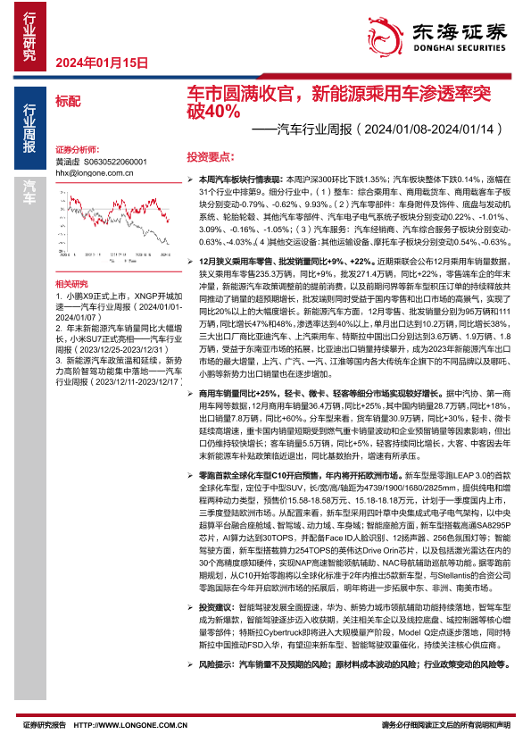 【东海证券】【20240115】车市圆满收官,新能源乘用车渗透率突破40%-14页
