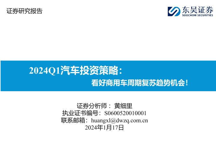 【东吴证券】【20240117】2024Q1汽车投资策略:看好商用车周期复苏趋势机会!-65页