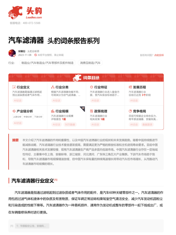 【头豹研究院】【20240119】20240119-头豹研究院-汽车滤清器 头豹词条报告系列-16页