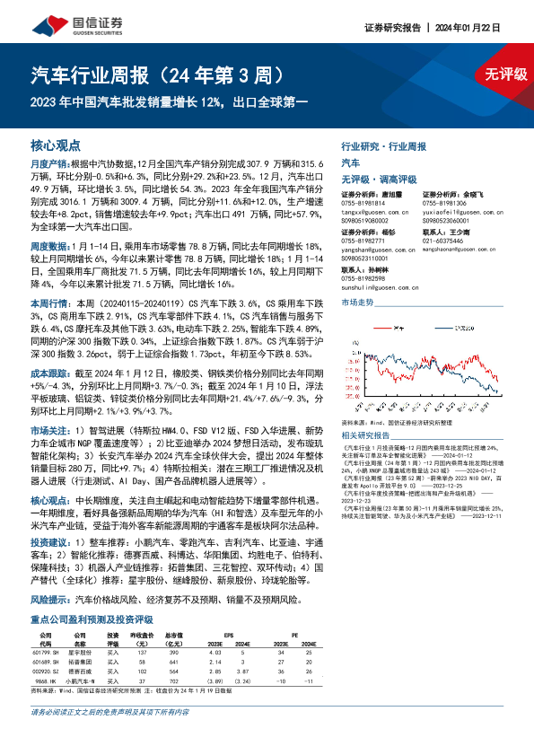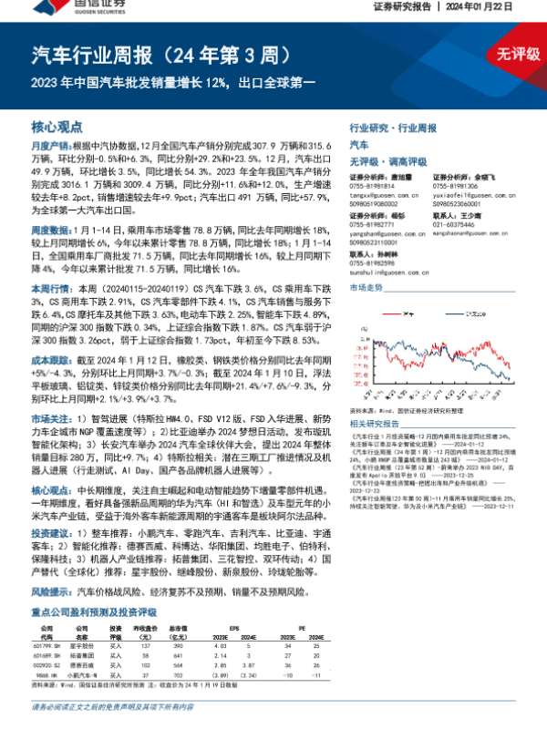 【国信证券】【20240122】20240122-国信证券-汽车行业周报(24年第3周):2023年中国汽车批发销量增长12%,出口全球第一-29页