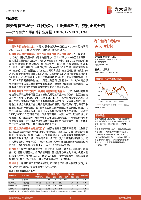 【光大证券】【20240128】汽车和汽车零部件行业周报:商务部将推动行业以旧换新,比亚迪海外工厂交付正式开启-21页